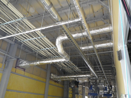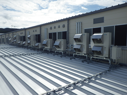 事務所・学校・施設等から一般家庭まで、冷暖房設備や換気設備の新規取付、さらには既存機器の老朽化による交換、改修工事など、快適な住生活、高い生産環境の実現のため、幅広い空調設備工事のニーズに応えています。また、それに伴う配管工事、ダクト工事等も行っています。