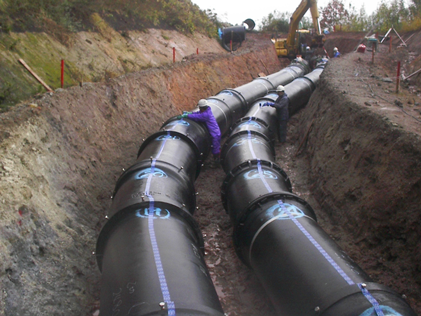 主に官公庁により発注される上水道、下水道の本支管施工や導水・浄水施設や下水処理施設の建設・更新などを行っています。